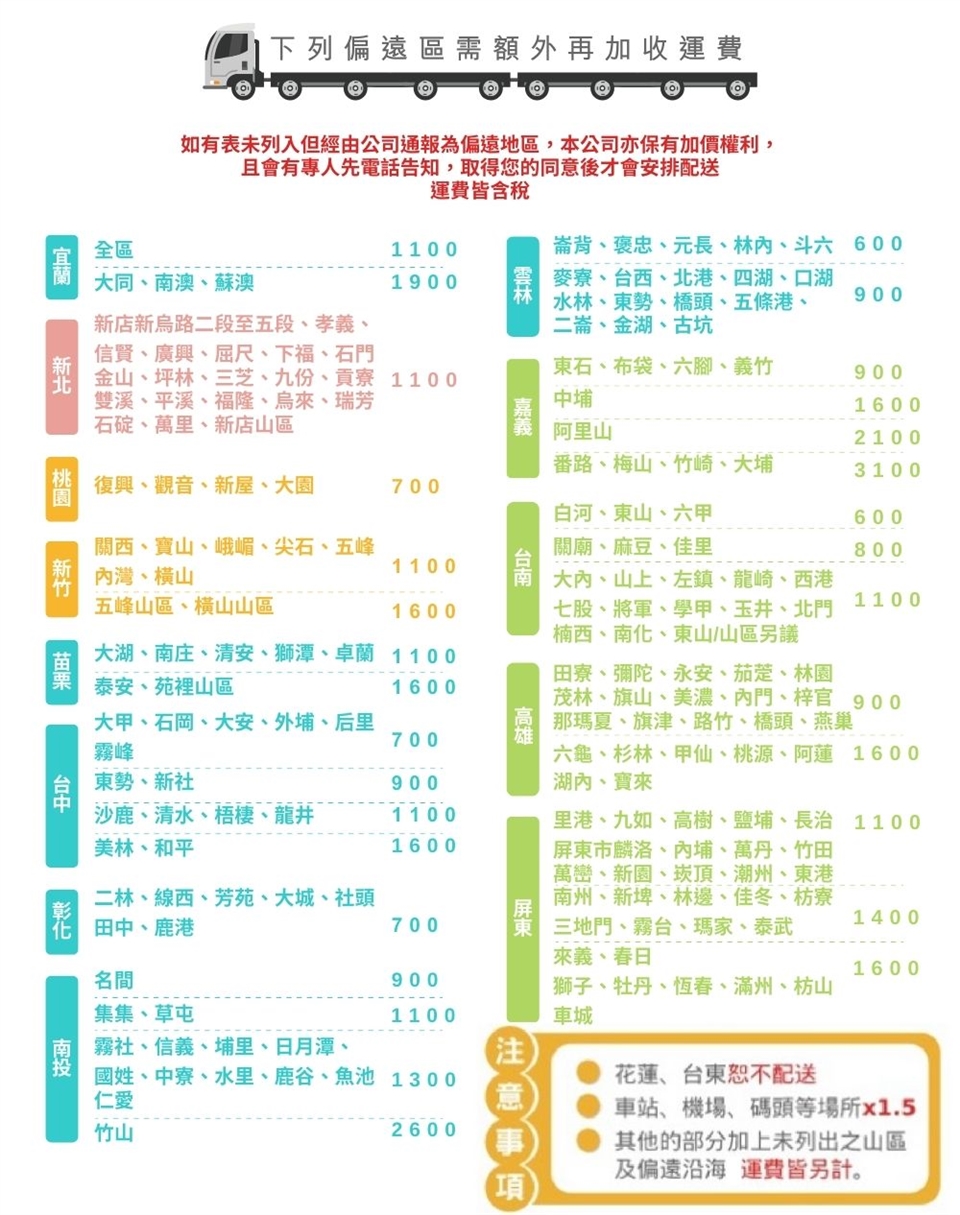 偏遠地區需加收額為費用,實際金額請參考圖片