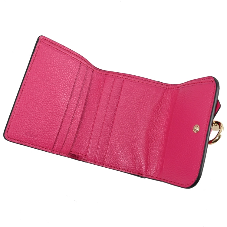 CHLOE專櫃熱賣款短夾推新色,採用高質感小牛皮搭配金屬LOGO設計,簡約的時尚風采,釦式翻蓋開口/內有5卡片夾層+2貼袋+1鈔票夾/外1釦式零錢袋供收納,實用性高,高雅耐看的必備單品,美觀又實用。
