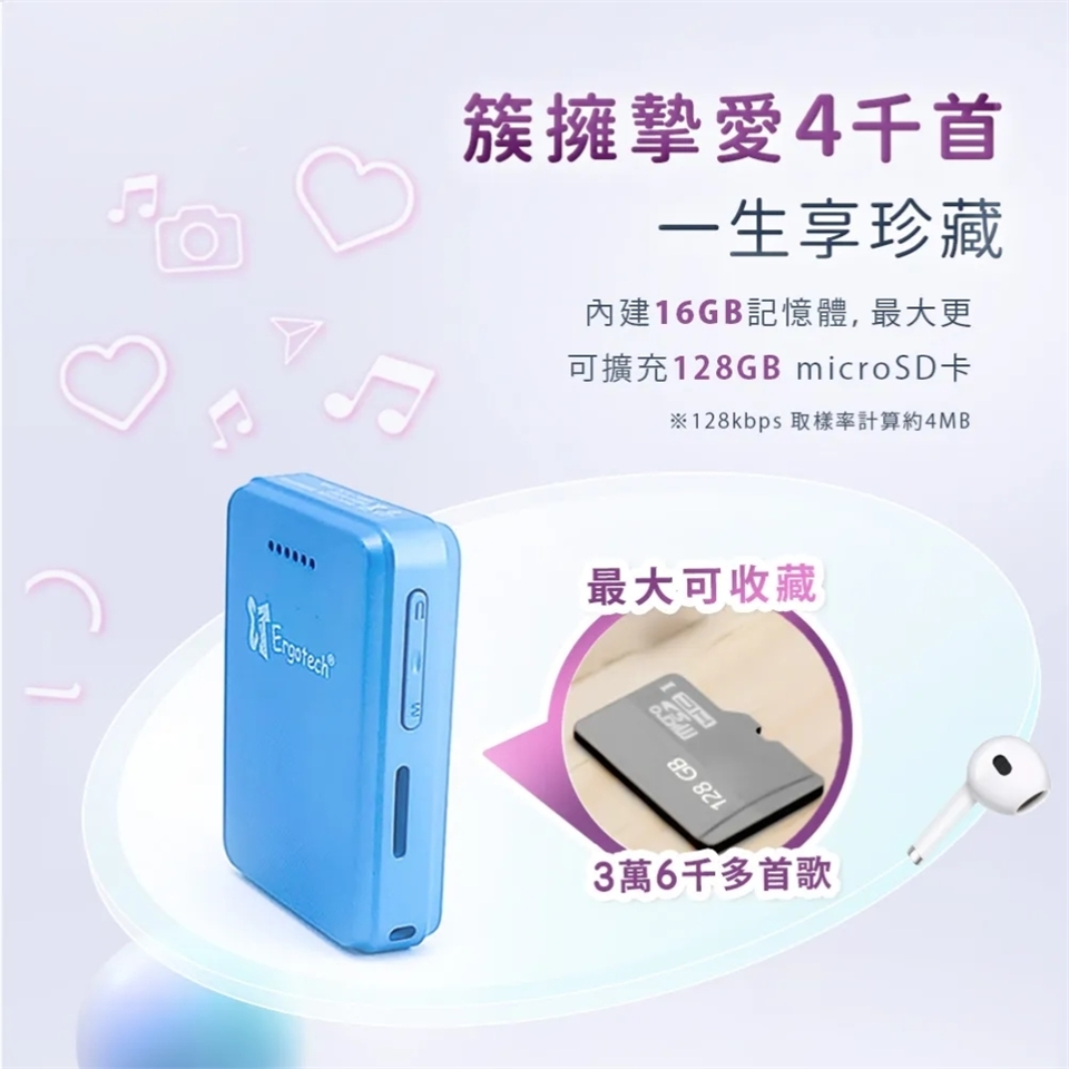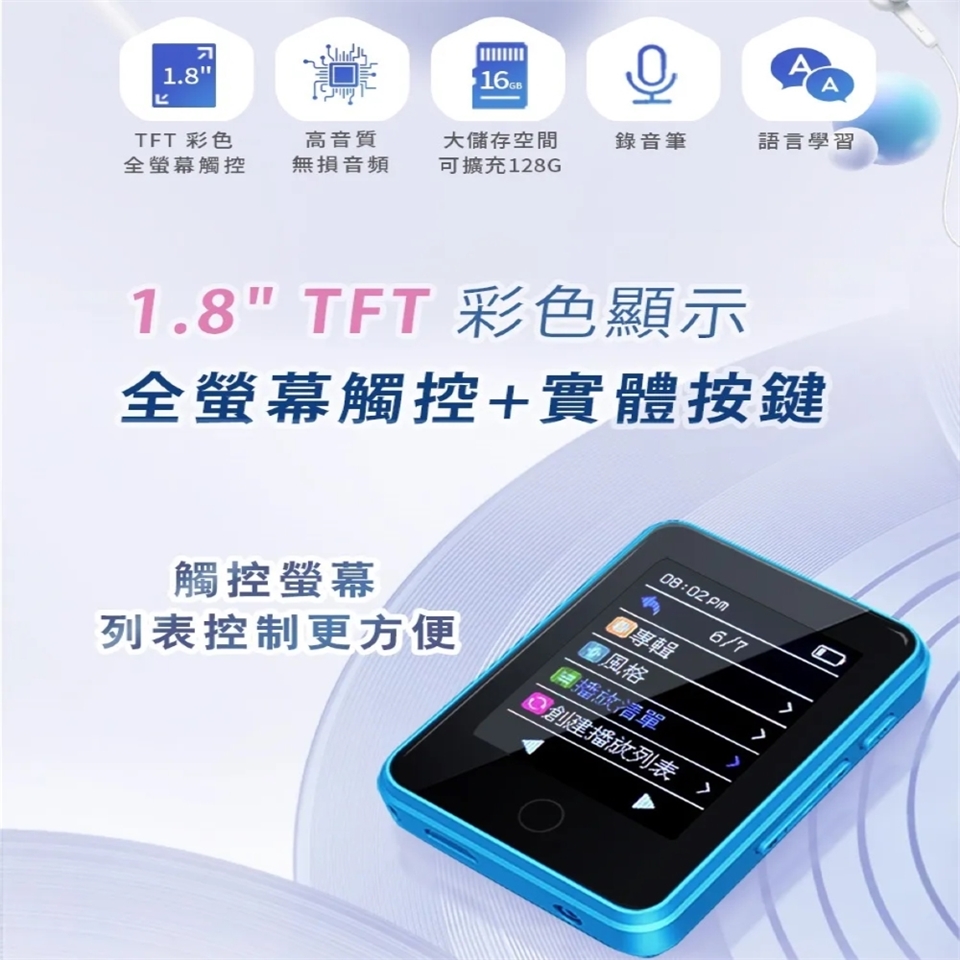 ERGOLINK人因 1.8吋16GB全觸控活力藍方音樂播放器 MP10-B