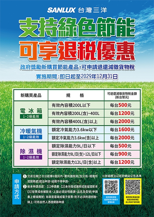 ★產品保固:本產品在正常使用情況下保證一年免費服務,產品保證書自購買日起經上網、或郵寄登錄作業完成者,另於購買日起的 180天內完成保證書登錄者,可享[特別保證內容]。實際保固條例,依台灣三洋官網公告為準:https://sanlux.com.tw/service