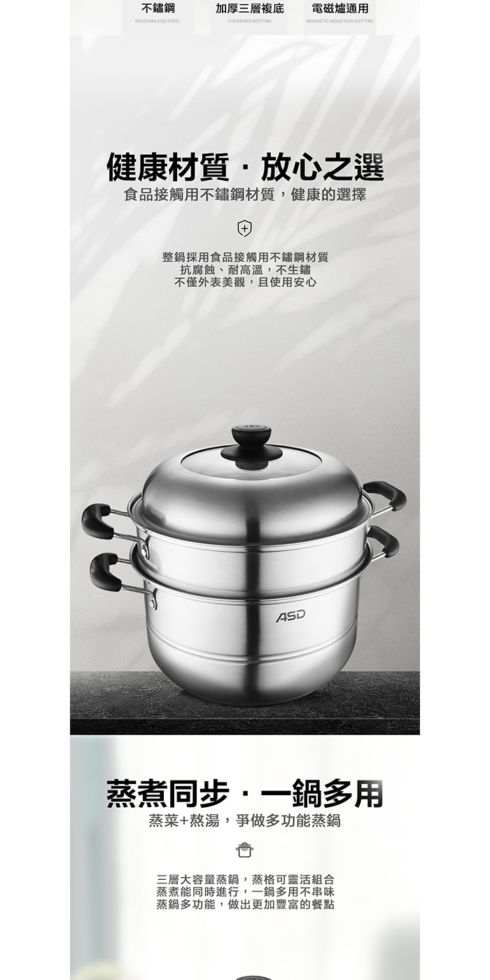 ★ 三層複底結構,不挑爐(電磁爐適用)。