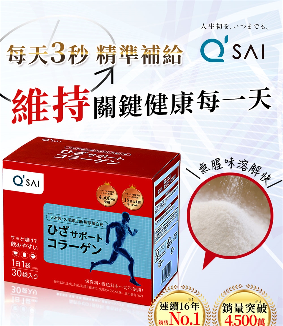 84%醫師推薦肯定,幫助行動靈活的順步關鍵成分是膠原蛋白,久采採用低分子膠原蛋白,比起日常生活中攝取能夠有效率被吸收,有助於維持健康體態,推薦使用!