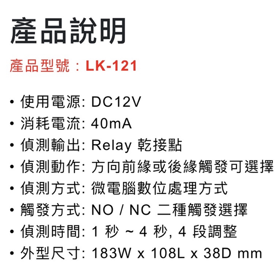 -觸發方式: NO / NC 二種觸發選擇