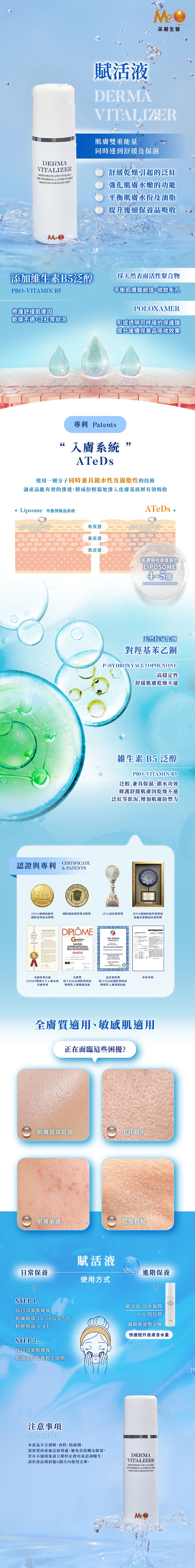 ✔進階保養 : 以活水凝膠(6):賦活液(1)的比例調和後濕敷全臉,快速提升皮膚含水量,可隨時補噴賦活液