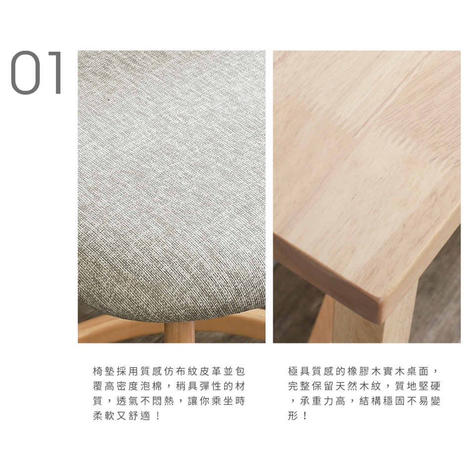 椅墊選用質感仿布紋皮革包覆高密度泡棉,坐感柔軟舒適!