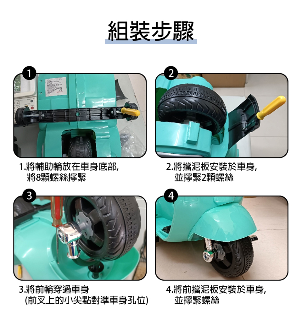 此款車子需到貨自行組裝,箱內附組裝說明