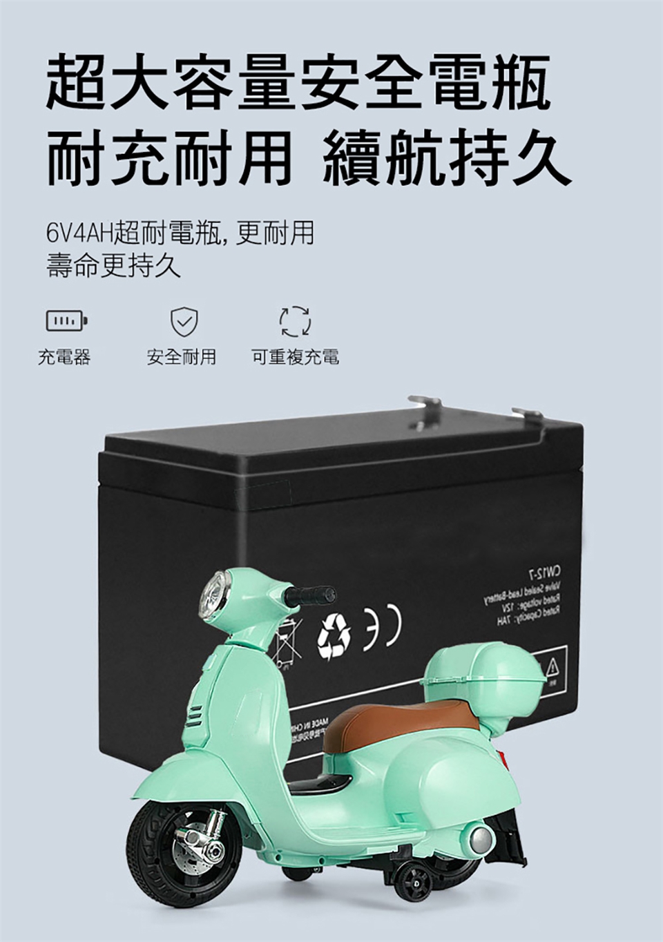 由於鉛酸密閉式電池沒有記憶效應,可隨時充放電,有行駛過後請立即充電後在放置或1~2個月無使用一樣要充電, 千萬不要用到沒電後就放置一旁,如此下次要用時,可能就無法蓄電嚕。