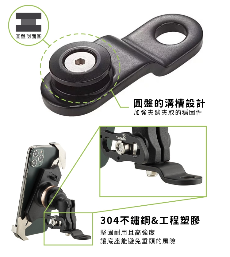 ●【品名】台灣TAKEWAY機車後照鏡支架用圓盤底座-BM02(減少垂頭)適LA3系列.LA5系列.T-BC02