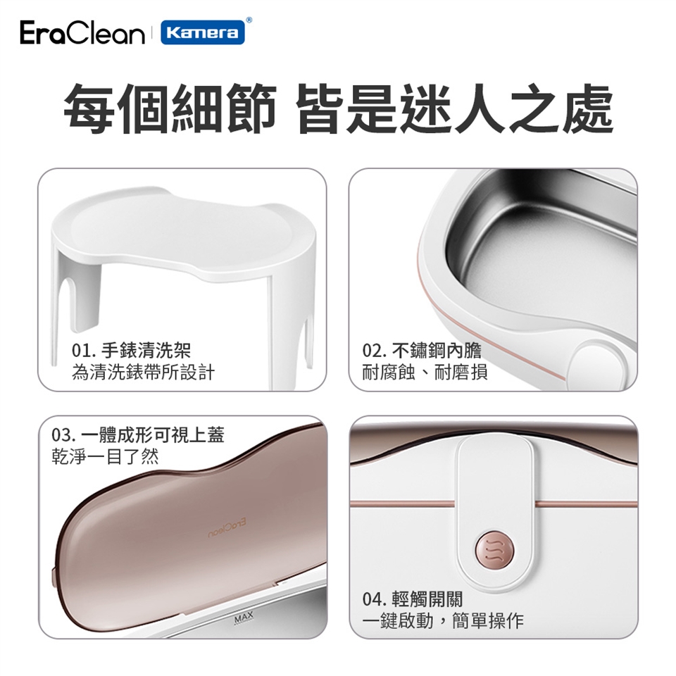 - 多種物品皆可清潔,像是眼鏡、飾品、手錶、彩妝工具、咬合板、餐具、梳子、指甲剪……等等。