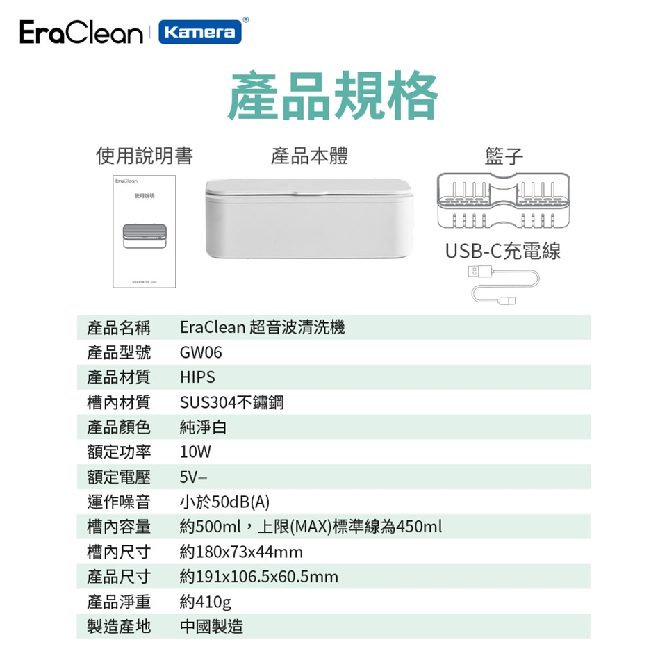 包裝內容:產品本體x1、USB-C充電線x1、籃子x1、說明書x1