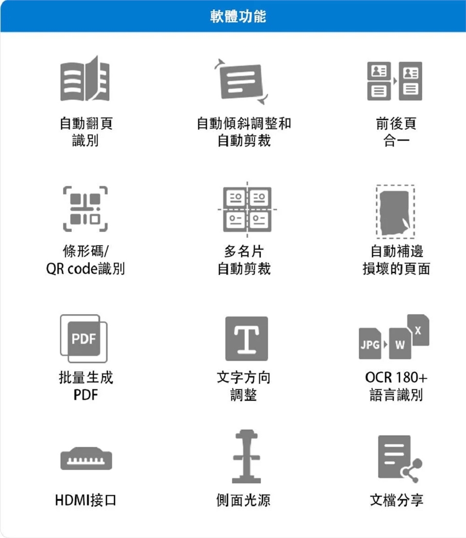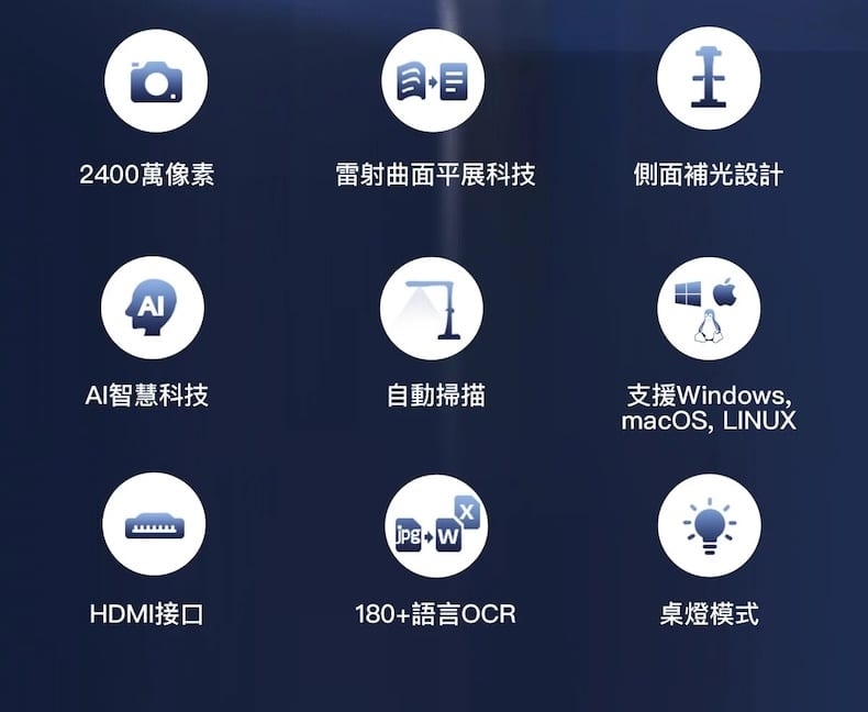 OCR 光學字符識別功能,可使掃描頁面轉換為可編輯的文件,從而將掃描可能性提升到一個全新的水平,讓你輕鬆享受掃描體驗。支援超過 180 多種語言,可以準確的一鍵轉檔,JPG、PDF、TIFF 編輯切換,不管是文件、文檔、圖片、數學公式通通電子數位收藏。