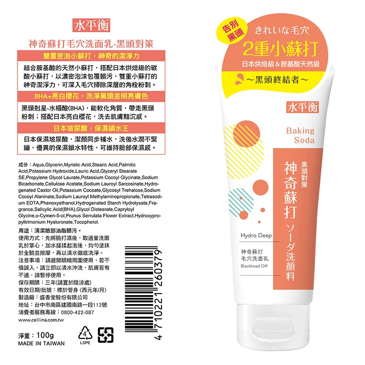 ◆ 結合胺基酸的天然小蘇打,搭配日本烘焙級的碳酸小蘇打,以濃密泡沫包覆髒污,雙重小蘇打的神奇潔淨力,可深入毛穴掃除深層的角栓粉刺。