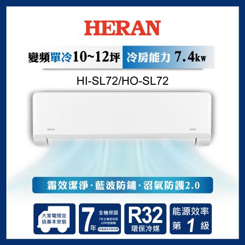限時選好禮【官方直營】HERAN禾聯 10-12坪 R32一級變頻冷專分離式空調 HI-SL72/HO-SL72 含基本安裝+舊機回收