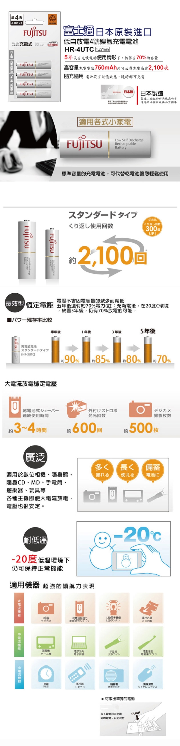 高效能.可重複充電約2100回