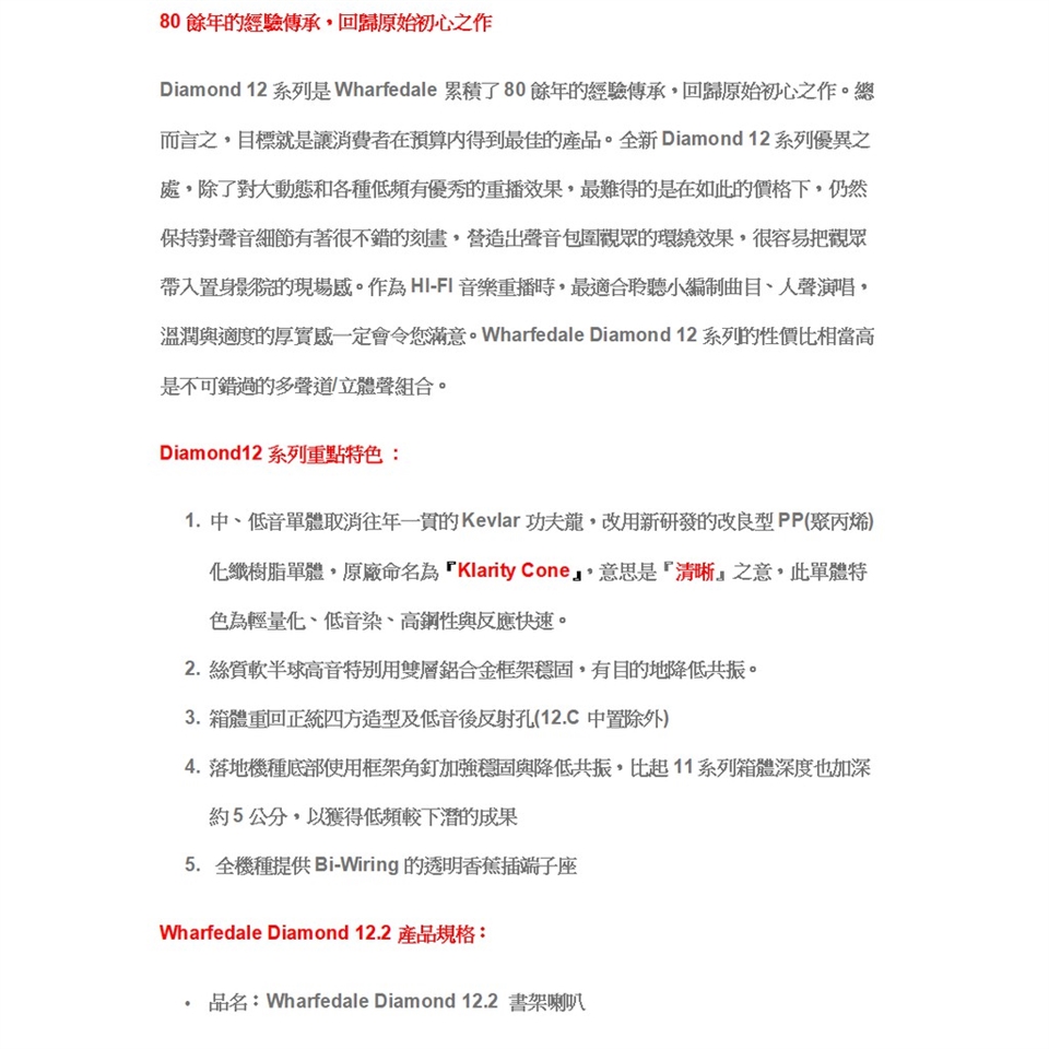 英國 Wharfedale Diamond 12.2 2音路書架喇叭/對