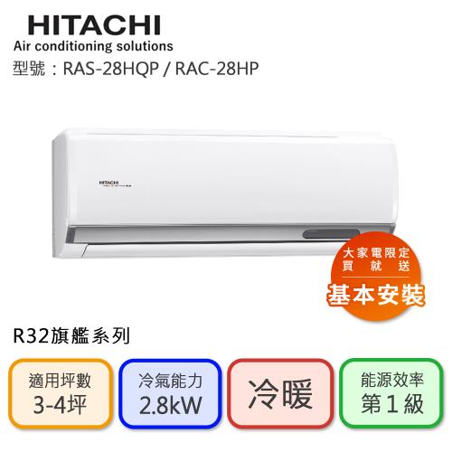 【HITACHI 日立】3-4坪 R32 一級能效旗艦系列變頻冷暖分離式冷氣(RAC-28HP/RAS-28HQP)