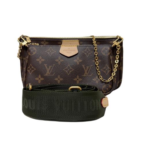 【Louis Vuitton】LV M44813 - Multi Pochette 經典帆布緹花肩帶 三合一麻將包 斜背包/肩背包 (綠色)