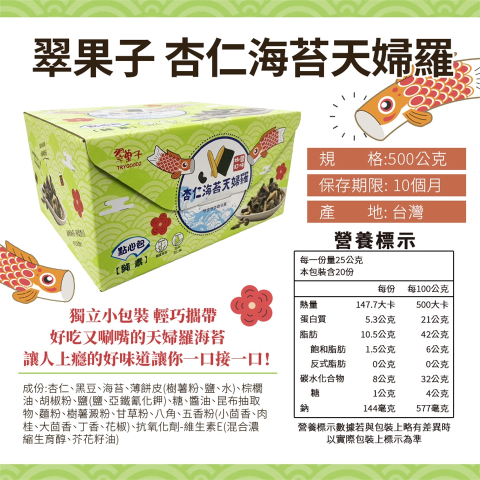 請置於陰涼乾燥處,避免陽光直射,開封後請儘快食用完畢。 本產品含有杏仁、黑豆、黃豆及小麥製品,可能導致過敏症狀。 本產品與花生、大豆、蛋類、奶類、堅果類、芒果、芝麻種籽、奇異果及蕎麥的產品於同一工廠生產,對其食物過敏者請留意。