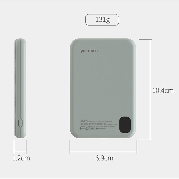 POLYBATT 石墨烯銅導散熱 15W磁吸MagSafe三用快充行動電源(台灣製造)
