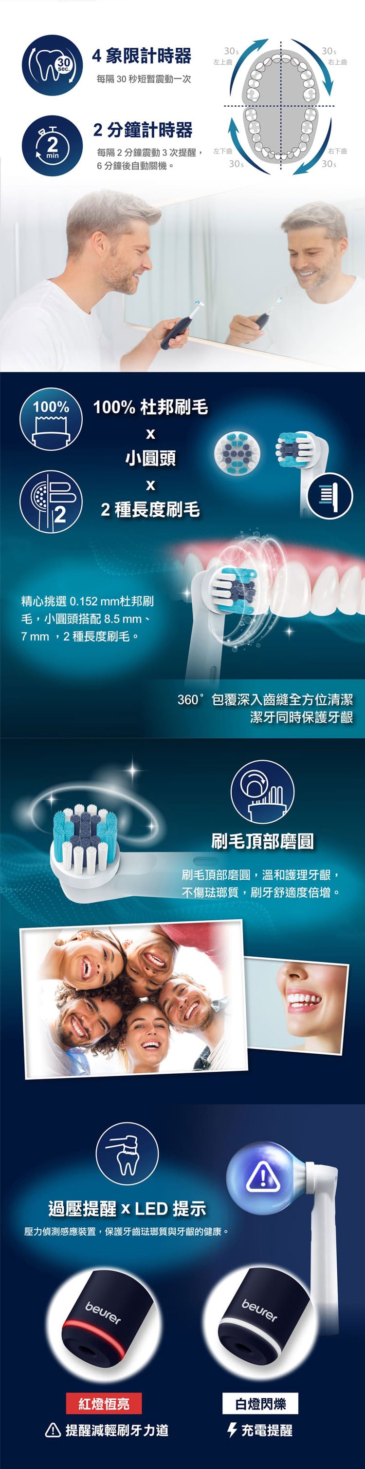 小圓頭360°包覆牙齒深入死角,全方位清潔