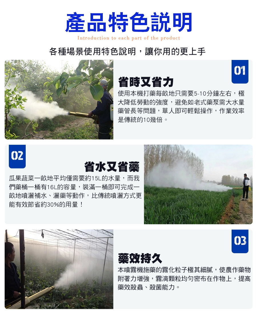 農作物的施藥施肥、消毒殺蟲滅菌、衛生防疫、廣泛消毒、溫室大棚
