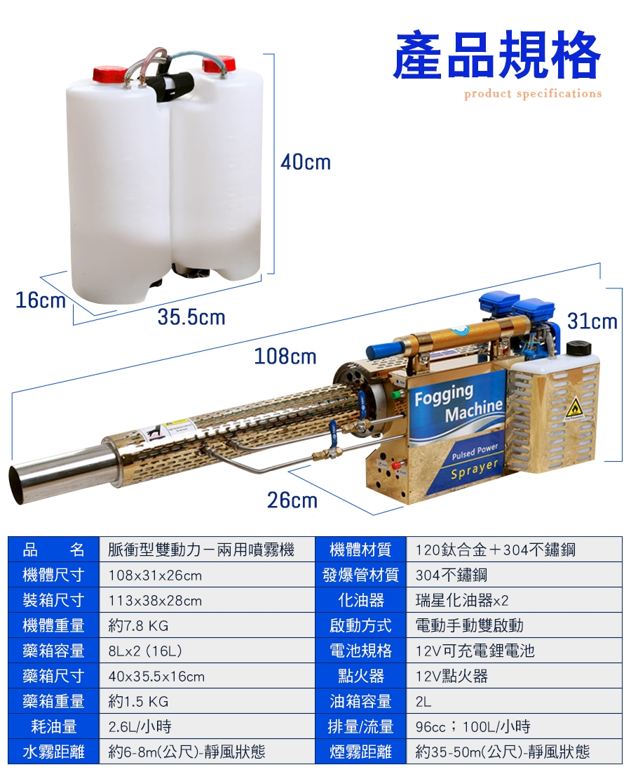 🔥水霧煙霧兩用,機身採用304不銹鋼+