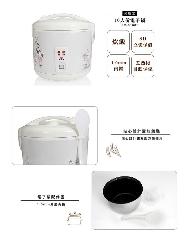 ◎ 配件:主體*1.說明/保證書*1 .飯匙*1.量杯*1