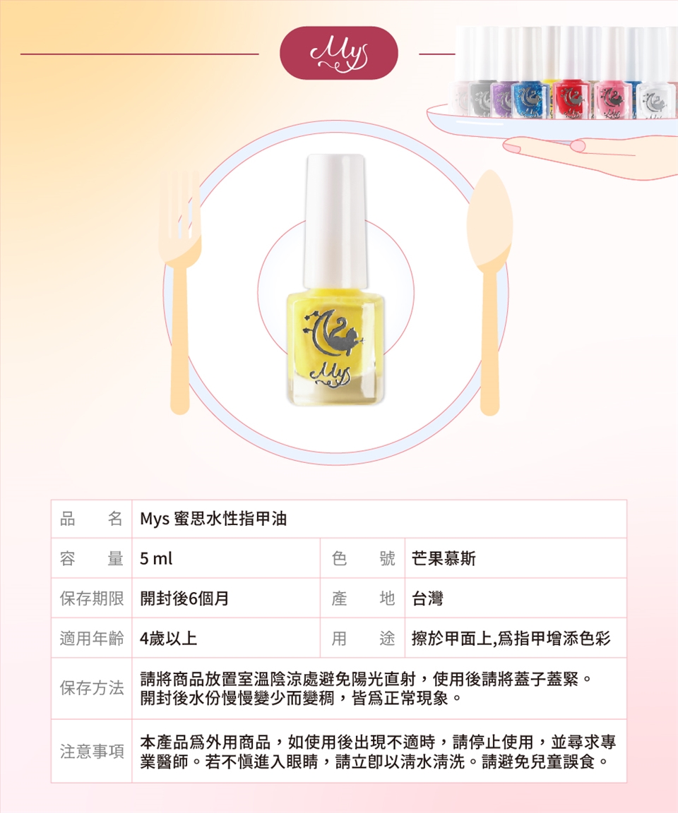 本產品為外用商品,如使用後出現不適時,請停止使用,並尋求專業醫師。若不慎進入眼睛,請立即以清水清洗。請避免兒童誤食。