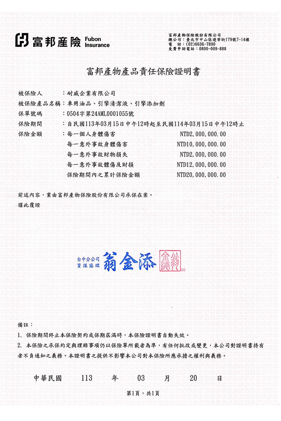 建議劑量: (1瓶:0 ~ 5L油量)