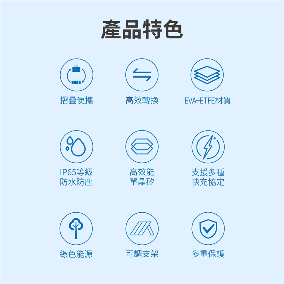 可調整支架貼心設計,使太陽能板擺放角度達到更好充電效果