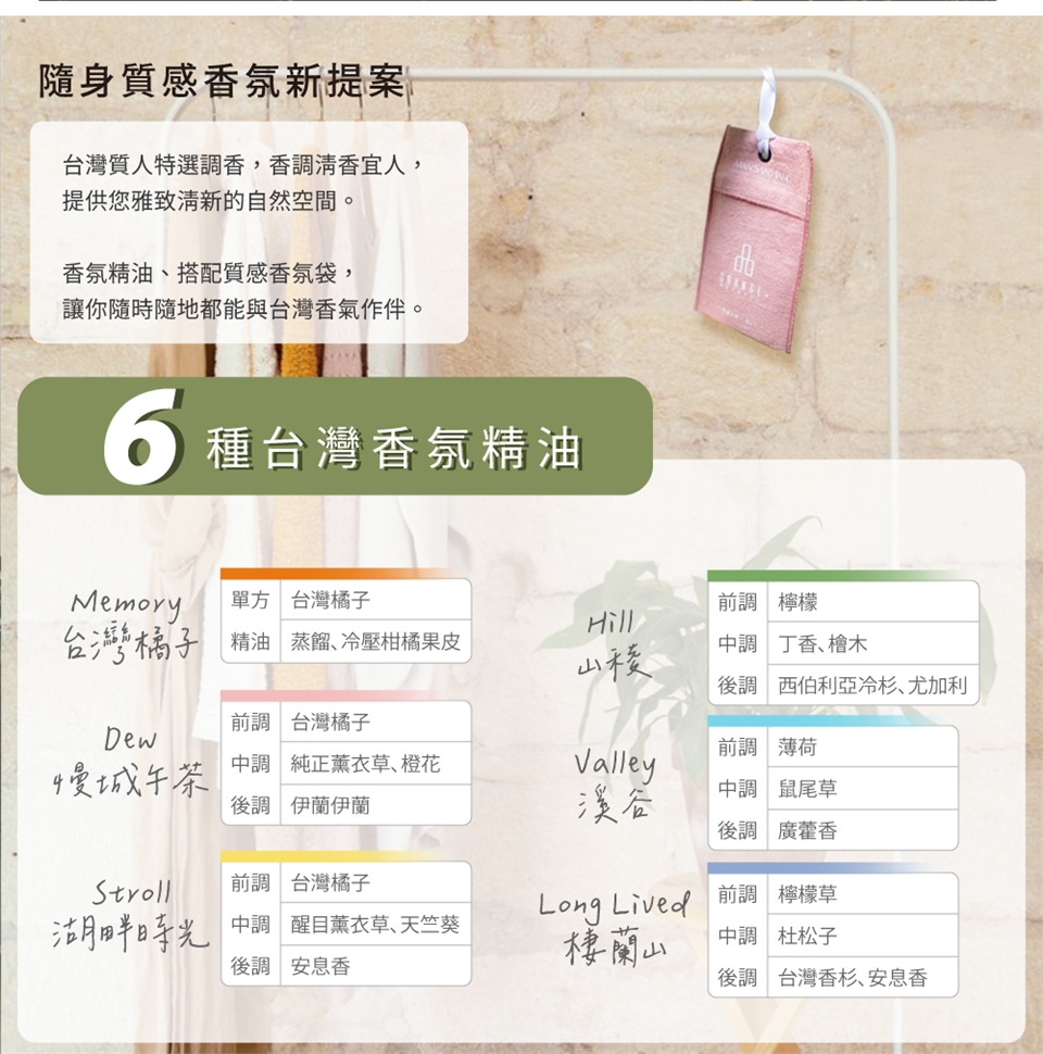 ※ 1滴天然精油持香時間:3~5天不等,3ml精油約可滴6次,持香時間約1個月。