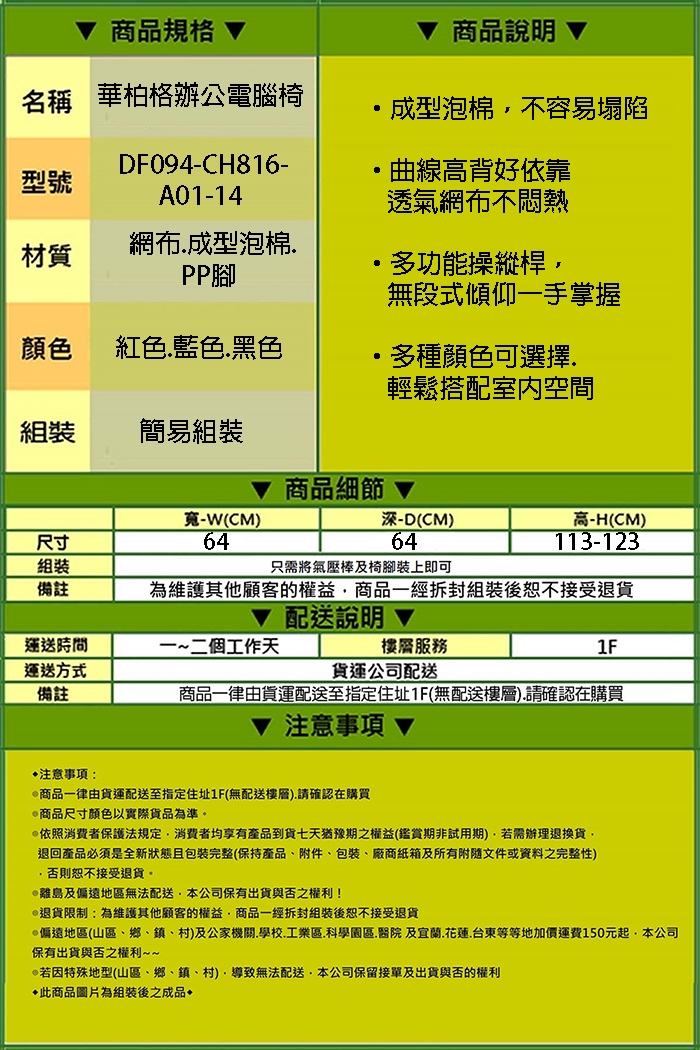 ‧商品名稱:《DFhouse》華柏格辦公電腦椅