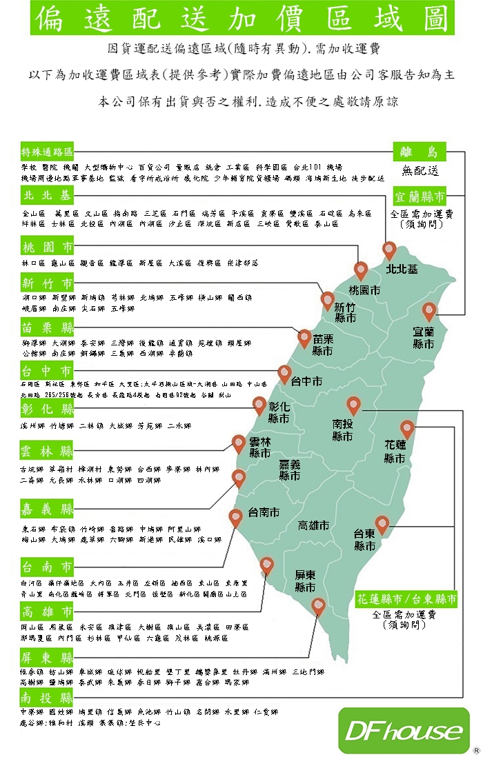 ◎偏遠地區(山區、鄉、鎮、村)及公家機關.學校.工業區.科學園區.醫院 及宜蘭.花蓮.台東等等地加價運費150元起,本公司保有出貨與否之權利~~