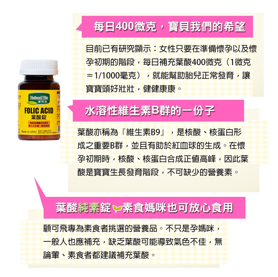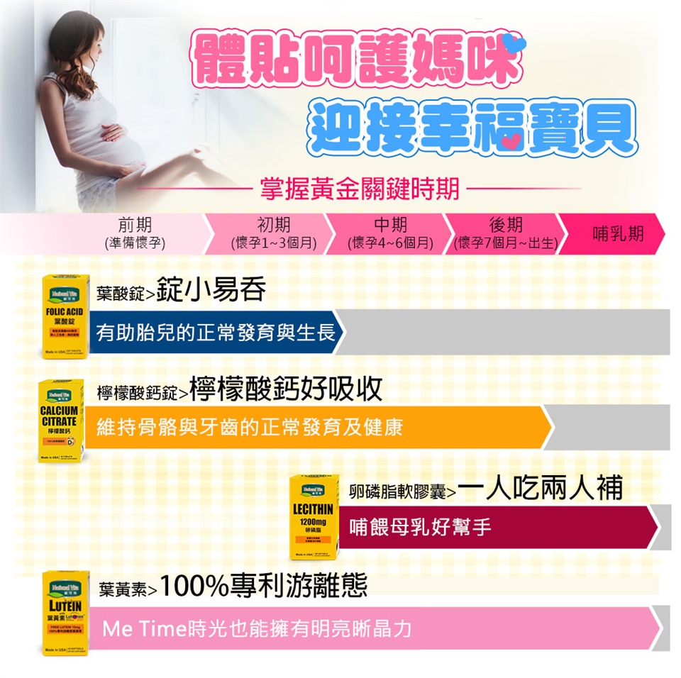 葉酸是維持胎兒正常生長與發育的重要營養素,建議在懷孕前就應開始補充。但大多數的孕媽咪在懷孕初期並不知道寶貝已經來報到囉,等到確定懷孕再補充葉酸,常會錯失最佳補充的黃金時機!