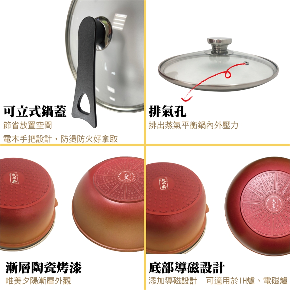 - 品名:大富備長炭厚釜鑄造鍋(附豪華強化玻璃鍋蓋)