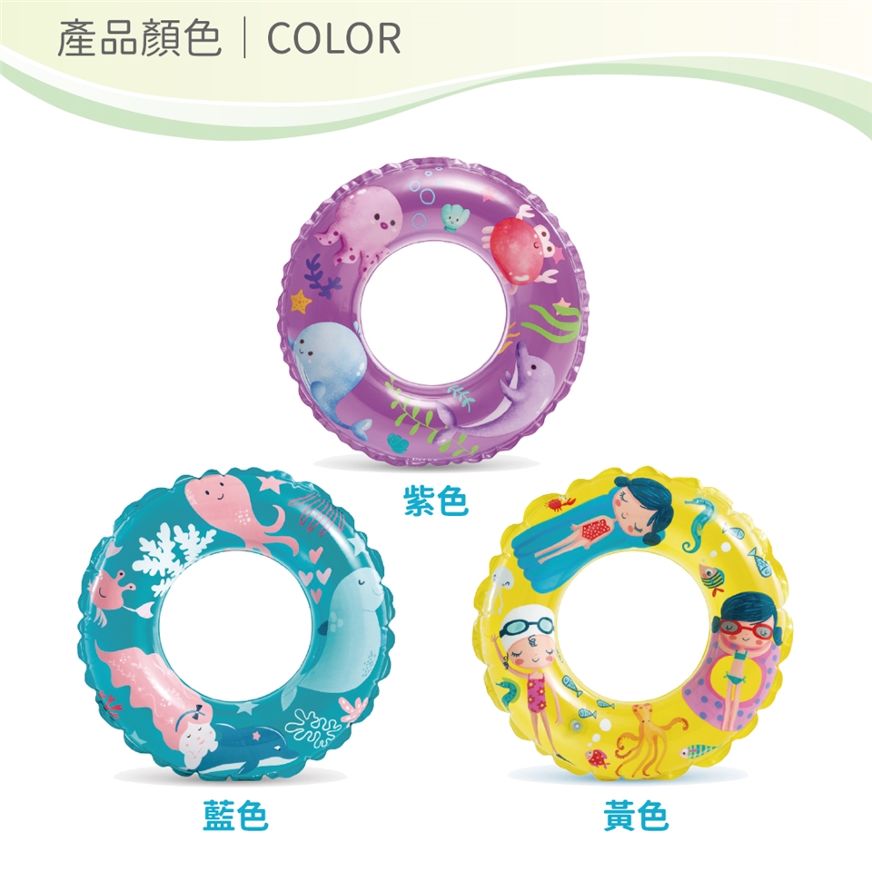 【INTEX】卡通游泳圈 61cm 適用:6~10歲  3款可選:黃色/藍色/紫色  15130102/5/6 (59242NEW)