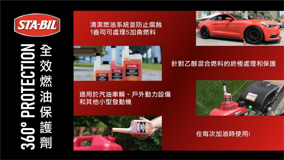 - STA-BIL 360° Protection是美國第一乙醇處理劑。