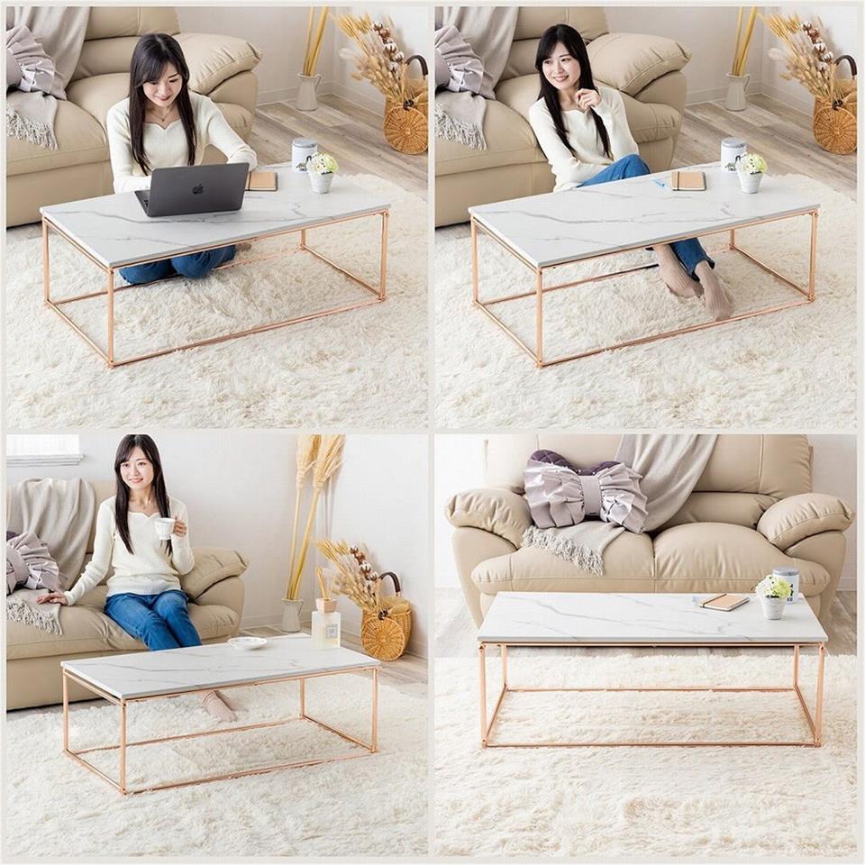 MDF板的桌面使用耐汙耐刮,最新穎的白色大理石紋路貼皮,桌腳則為明亮感與時尚感十足的玫瑰金色電鍍鐵管,歐美日韓現正流行的顏色搭配,時尚感與設計感全部滿足,耐重度佳質地輕,打掃時或重新布置時都能方便移動,居家最好用。