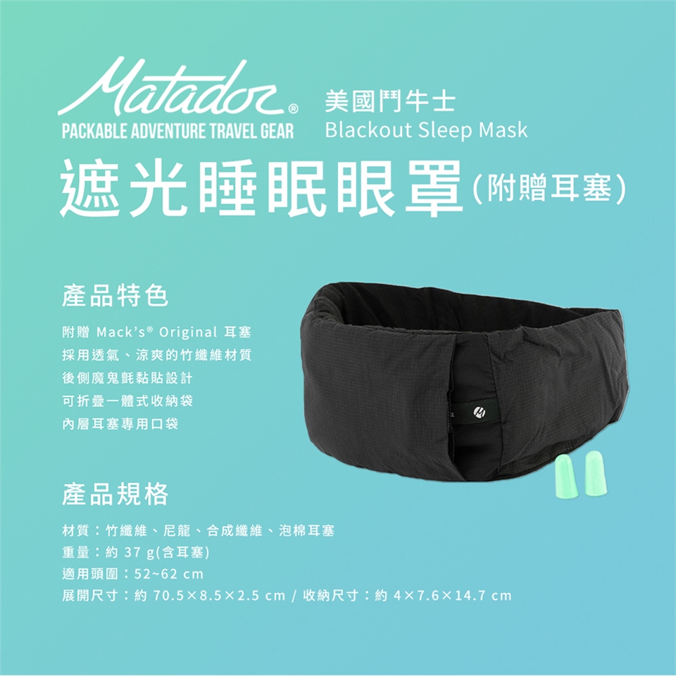 品名:【Matador 鬥牛士】Blackout Sleep Mask 遮光睡眠眼罩(附贈耳塞)