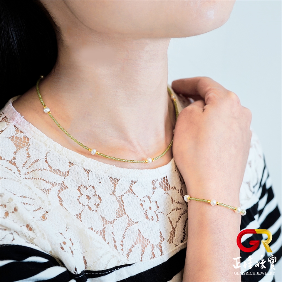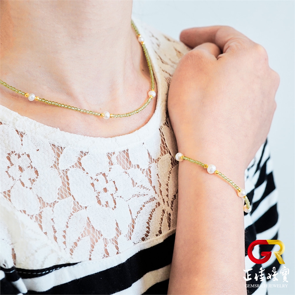 天然淡水珍珠 極細橄欖石 珍珠項鍊 珍珠手鍊 珍珠套組|925銀