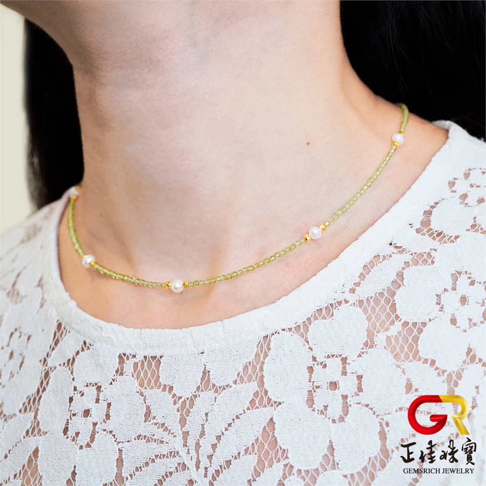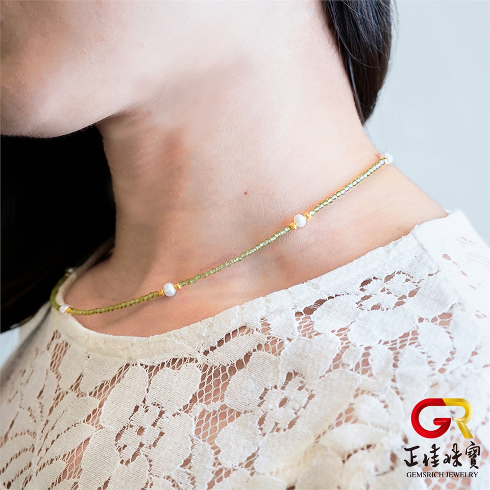 主角:天然淡水珍珠 極細橄欖石 珍珠項鍊 珍珠手鍊 珍珠套組|925銀