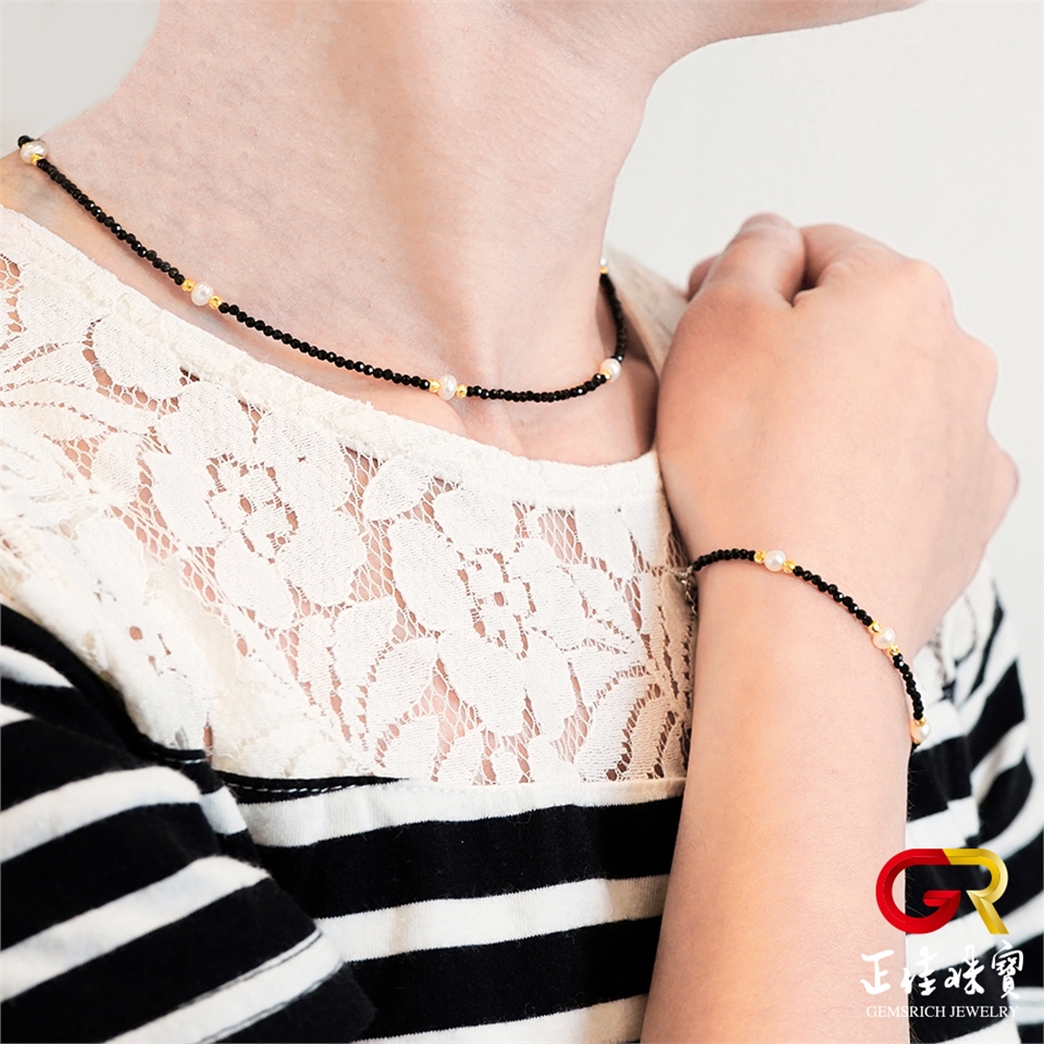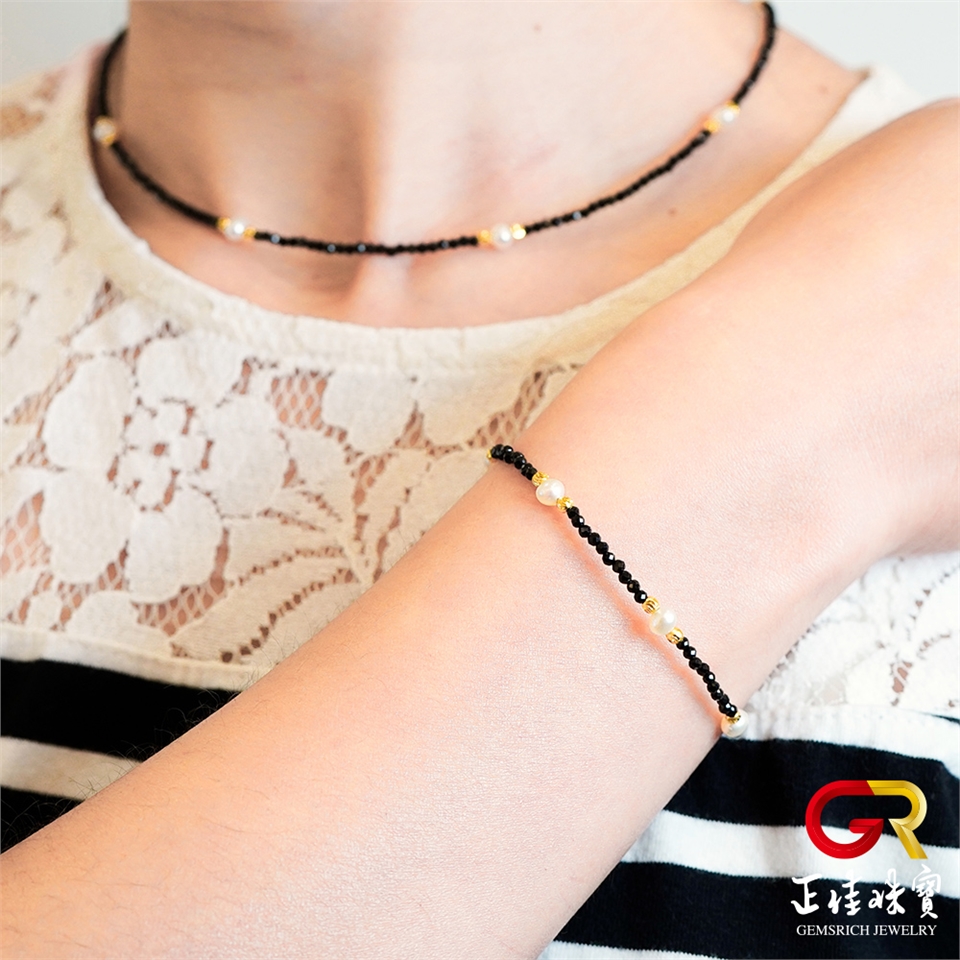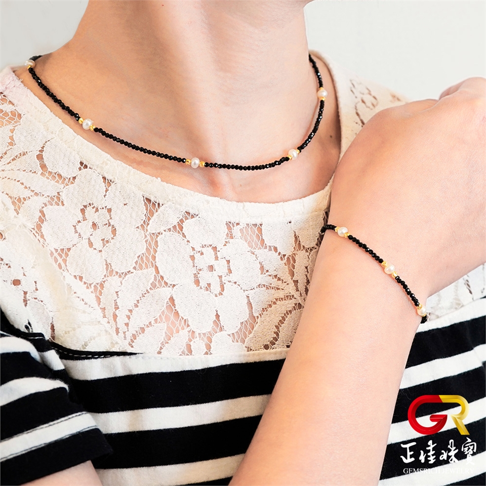 主角:天然淡水珍珠 極細黑尖晶 珍珠項鍊 珍珠手鍊 珍珠套組|925銀