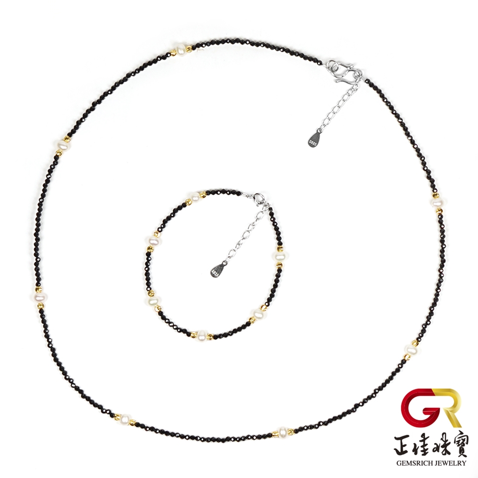 天然淡水珍珠 極細黑尖晶 珍珠項鍊 珍珠手鍊 珍珠套組|925銀