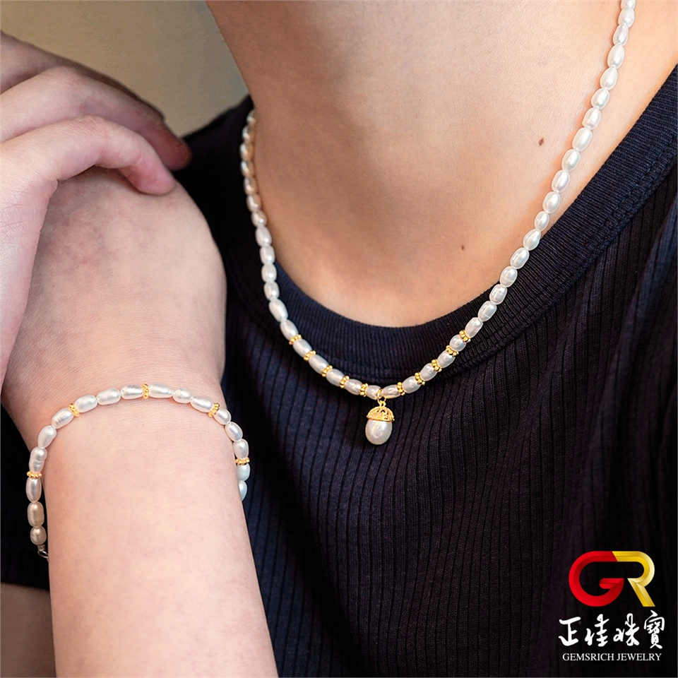 主角:天然淡水珍珠 4mm 珍珠米珠 銀鑲珍珠吊墜 珍珠項鍊 珍珠手鍊 珍珠套組|925銀