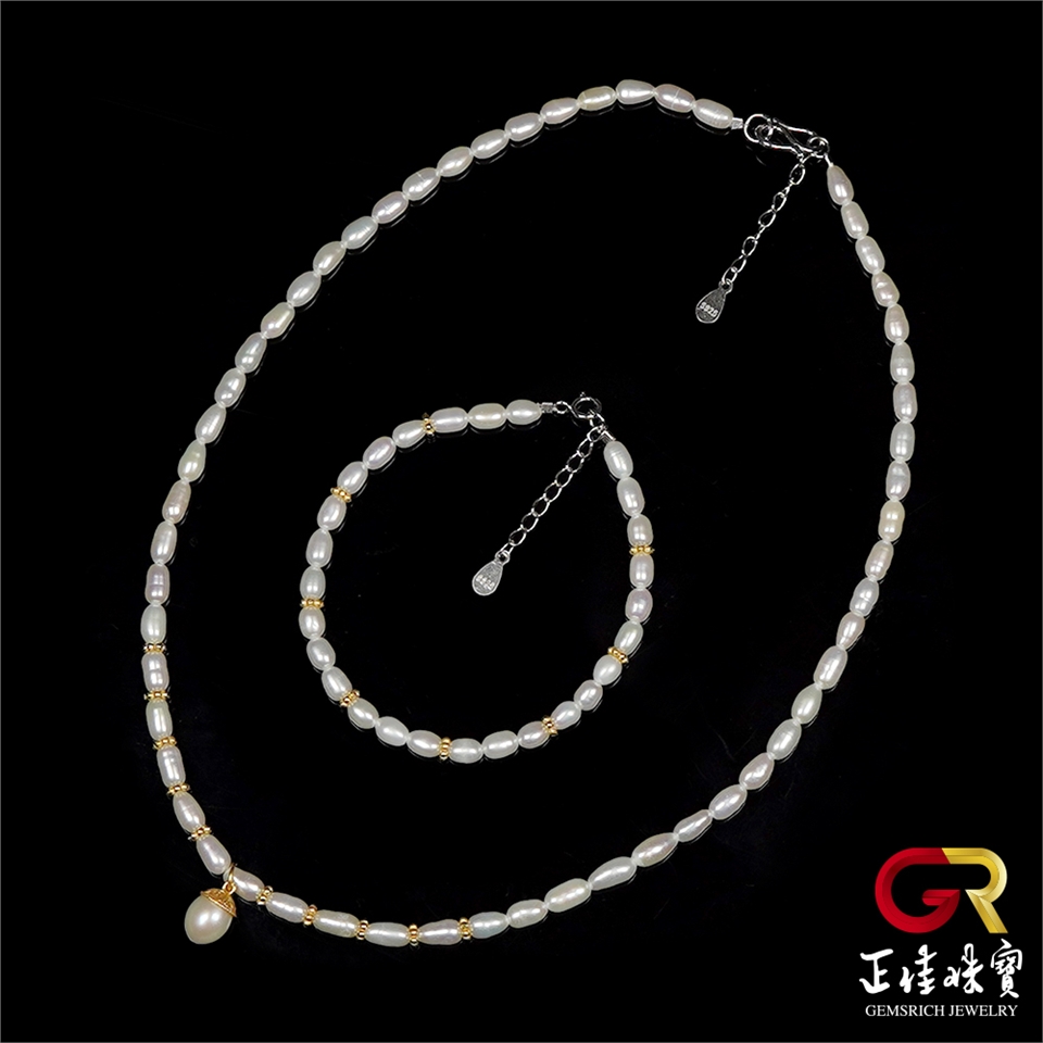 天然淡水珍珠 4mm 珍珠米珠 銀鑲珍珠吊墜 珍珠項鍊 珍珠手鍊 珍珠套組|925銀