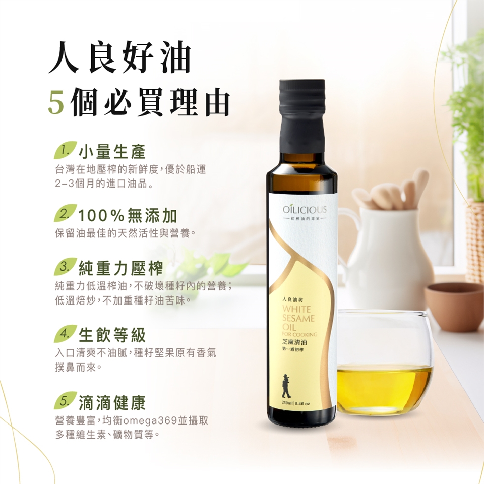‧平均1公斤芝麻僅能生產250毫升的特級清油。