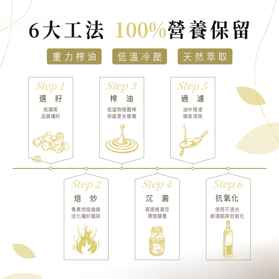 ✔️100%無添加、無萃油,只萃取第一道初榨油,保留『油』最佳的天然活動與營養。