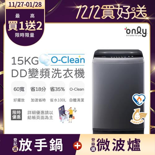 【TOP熱銷~搶先預購!】only O-Clean 15KG窄身好取DD變頻洗衣機OT15-M26I灰(省水15公斤直立式)