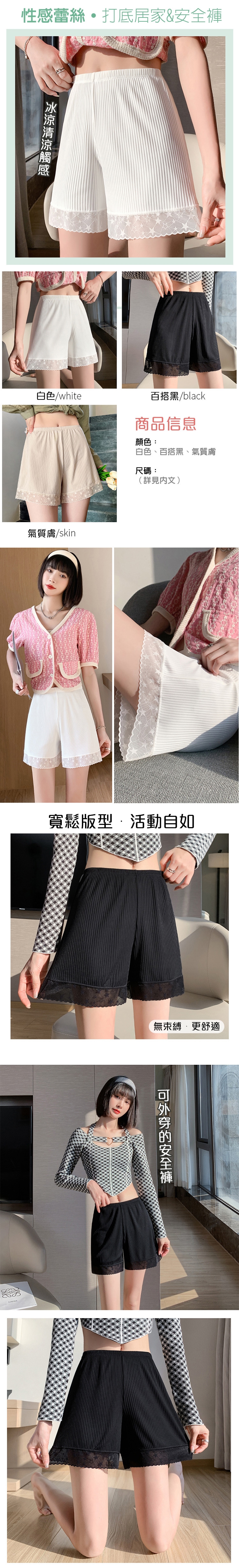 商品名稱:冰絲涼感親膚蕾絲內搭褲居家褲-R