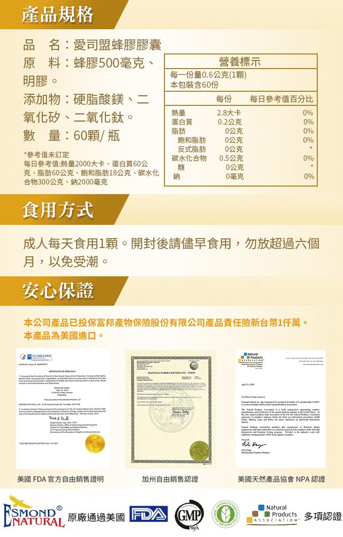 ◆製造廠:ESMOND NATURAL INC. IRWINDALE, CA 91706 U.S.A 製造廠
